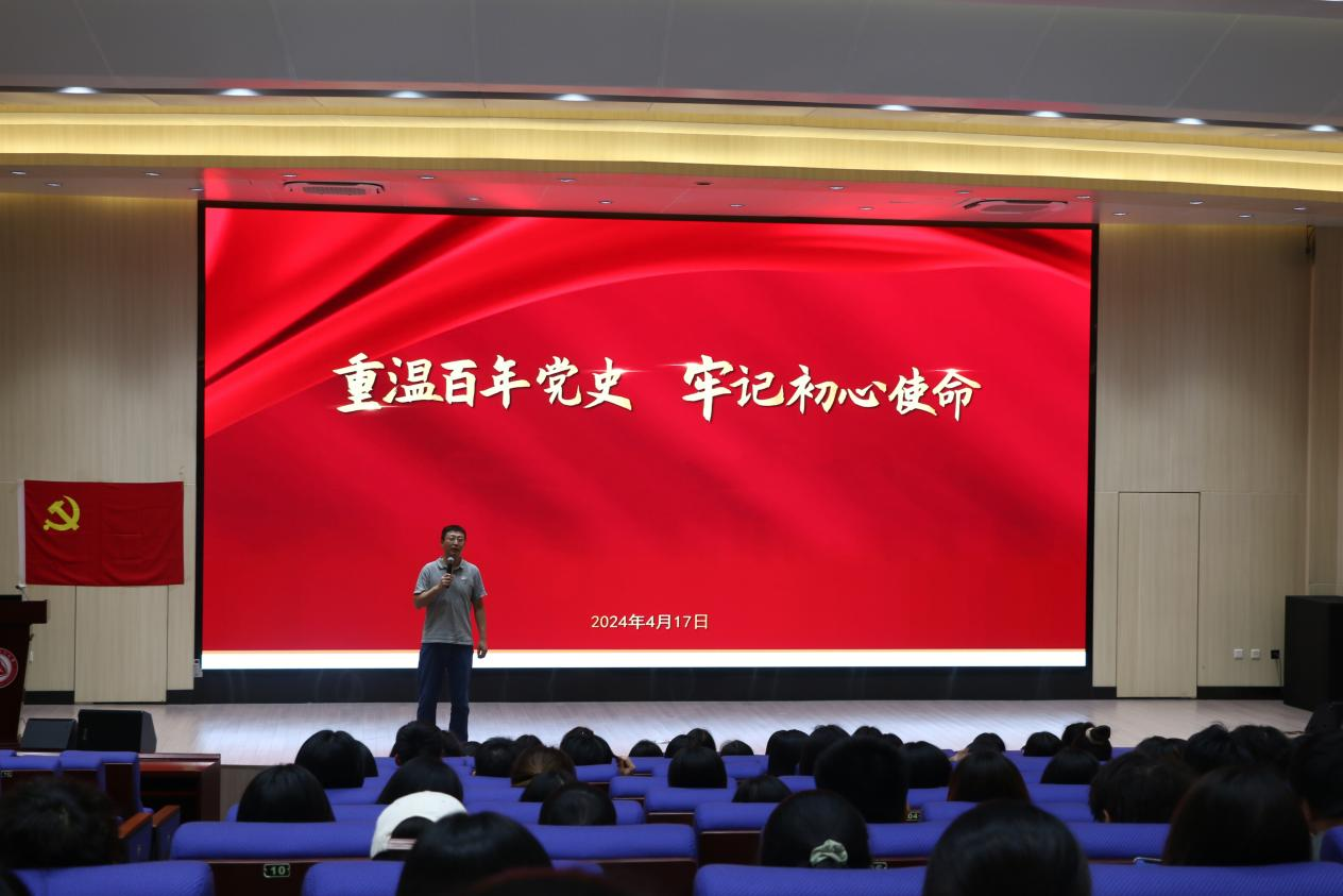 4月17日下午,伟德bv国际体育博达书院学生党支部在官龙山校区报告厅举办第六期入党积极分子培训班开班第一课,食药学院副书记段杰鑫以“重温百年党史,牢记初心使命”为主题进行授课。