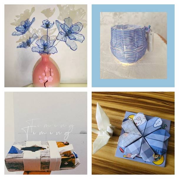 为贯彻落实大学生心理健康教育,为学生减压赋能,食药学院二级心理辅导站开展“幸福工坊”系列活动,通过手工、益智活动来提高学生专注度,远离烦恼,调节身心。居家上网课期间,为了丰富和满足全校学生的文化生活需求,学院举办“幸福工坊”系列活动之“宅家手工,变废为宝”活动。创意手工大赛要求参赛者利用身边常见的“废物”如易拉罐、废纸壳、空笔芯等材料变废为宝,制作创意满满、靓丽多彩的手工作品。本次活动展现了同学们的奇思妙想,同学们通过活动提高了动手能力,感受到手工制作过程中的无穷乐趣,丰富了居家网课期间的业余生活。(食药学院李修儒)