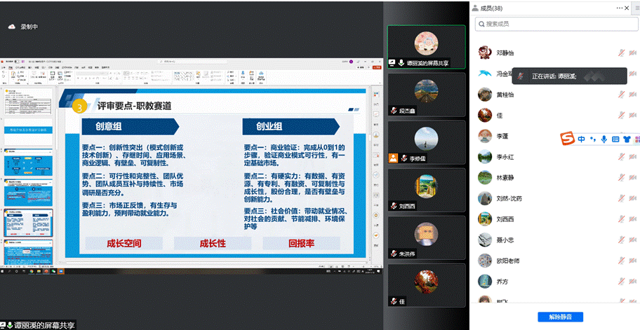 3月30日,食药学院 “互联网+”大学生创新创业大赛政策解读暨经验分享会在腾讯会议线上召开。食药学院副院长李永红、党总支副书记段杰鑫及双创学院谭丽溪、谭凌峰出席了会议,学院各专业、实训室老师及获奖团队师生参加了会议,会议由段杰鑫主持。