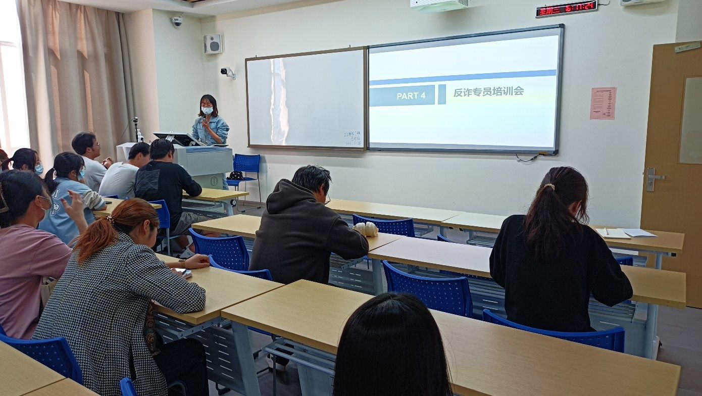 3月2日,为进一步推进新学期校园防范电信网络诈骗宣传工作,增强学生反诈意识,食药学院在德业楼举办新学期反诈专员培训会。各班级反诈专员经过自主报名、安全知识测试、个人能力考核选拔出来。辅导员吴叶琴列举了学校开学以来发生的电信诈骗案件及涉案金额,用实际案例警示学生,分享防诈反诈的技巧与方法,并明确了班级反诈专员的工作职责以及制定新学期的工作目标。本次反诈专员培训会,是学院贯彻落实学校要求,切实将防诈反诈理念深入人心的重大举措。(食药学院 刘根柱)