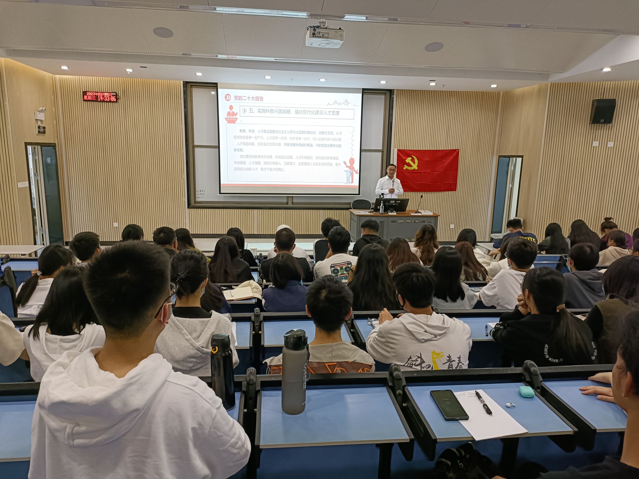 刘冬以《学习贯彻党的二十大精神 深入实施科教兴国战略》为题,从“党的二十大报告学习”、“深圳生物医药和食品安全与健康产业现状”、“学院近一年来科研和教学工作进展”、“科教兴国战略”四个方面进行了讲解。刘冬通过结合学院、专业的建设发展实际以及区域产业行业的现状前景等介绍,让师生党员对党的二十大报告中提出的实施科教兴国战略,人才强国战略等有了更深刻的理解和认识。
