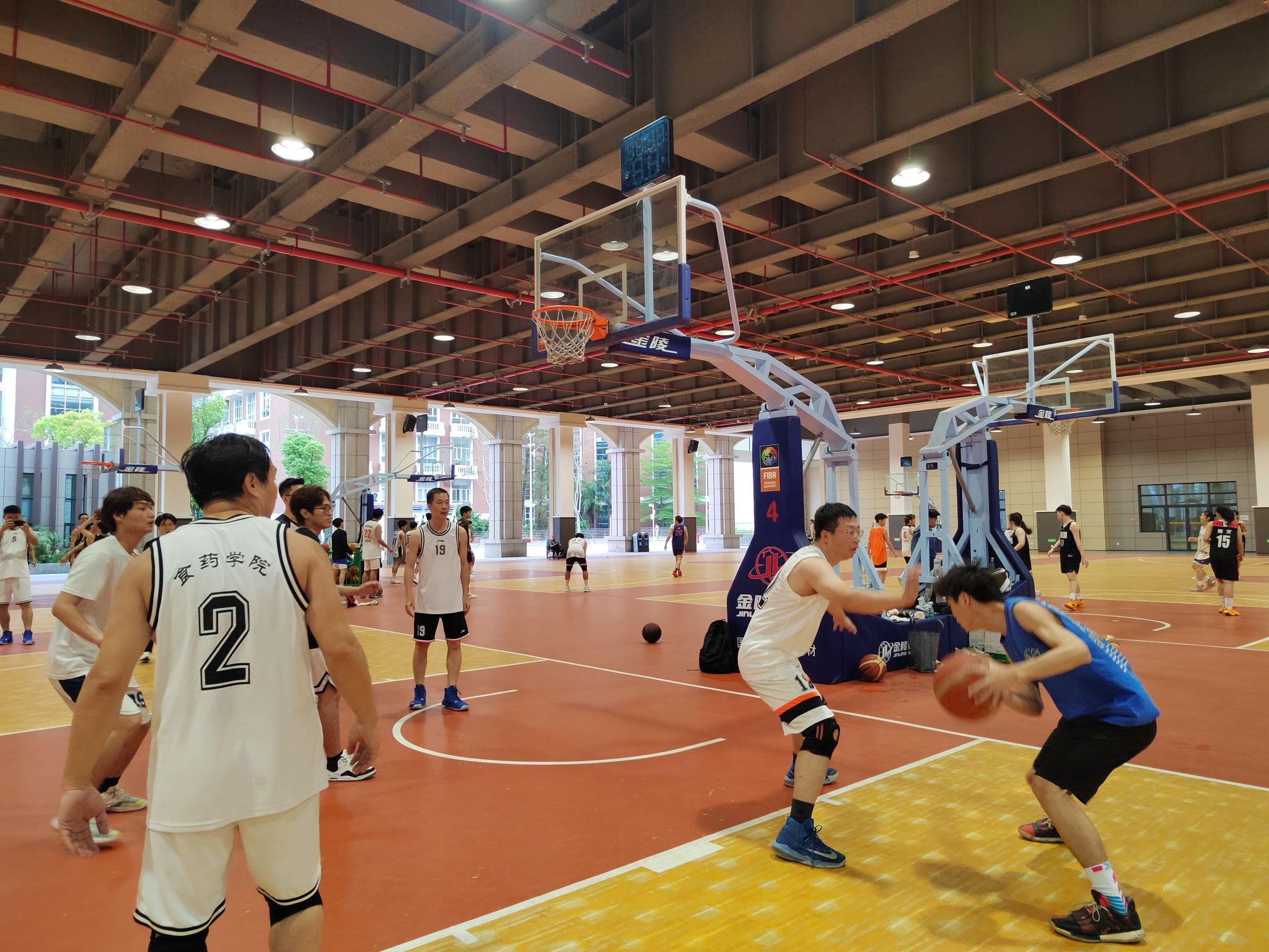赛场上精彩瞬间不断,激烈的竞赛对抗、紧张的追赶角逐、彼此的相视一笑,场下观众奋力加油,扣篮声、跑步声、喝彩声交织在运动场上,无不蕴含着师生齐乐融融的情感。