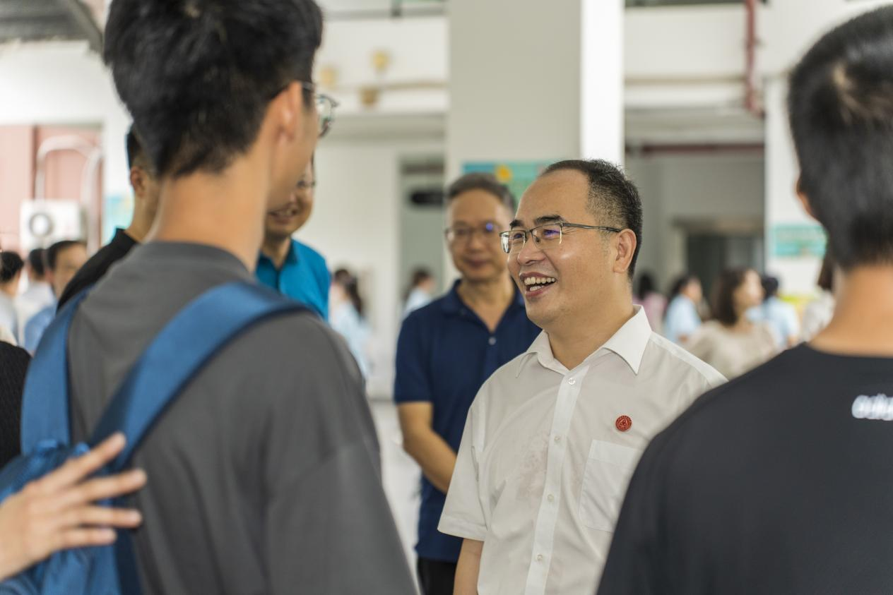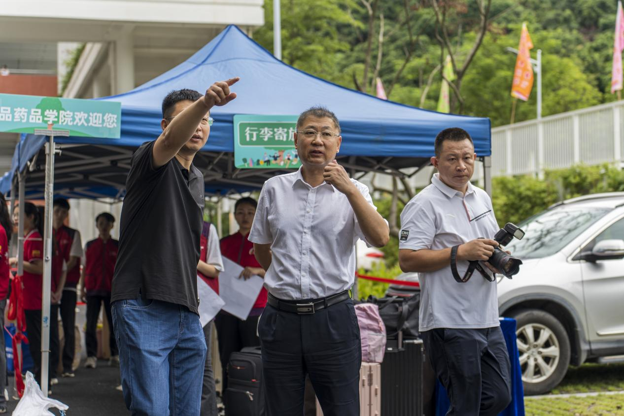 9月9日上午,学校党委书记杨欣斌,校党委副书记、校长许建领,副校长董朝君以及学校各相关职能处室领导先后莅临食药学院新生大本营报到现场检查指导开学迎新工作,与伟德官网23级新生及新生家长亲切交流,并看望慰问工作在迎新工作一线的师生员工。