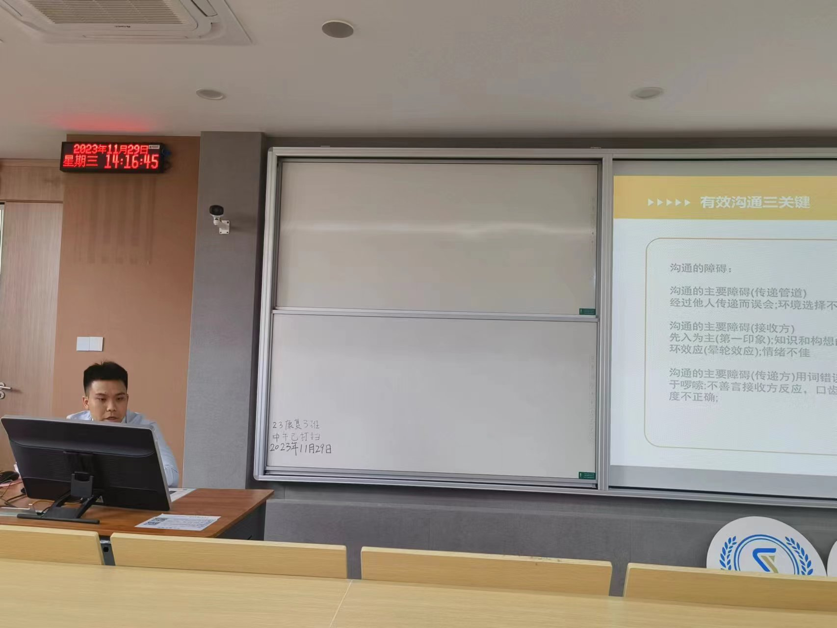 为了加强同学们的沟通能力,提高表达水平,食药学院于2023年11月29日在北区教学大楼201实施了本年度 “飞翔计划”学员能力提升专题培训第四课,由2014级校友赵起灏开展的《有效沟通》专题讲座。