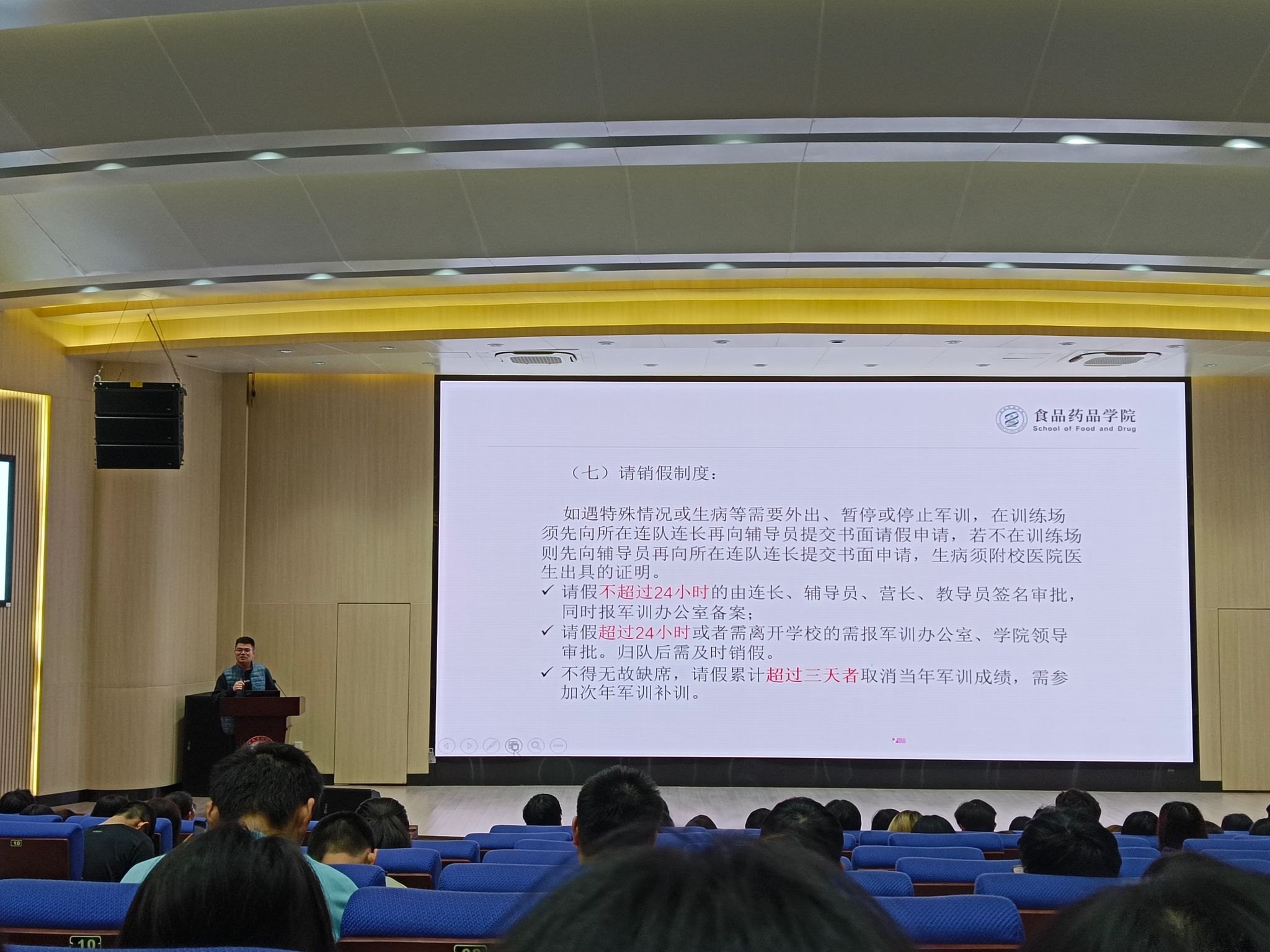 为帮助2023级学生做好期末考试的准备和开展军训动员工作,食药学院于1月2日在官龙山报告厅召开了2023级年级大会暨军训动员大会,2023级全体学生参加,年级辅导员杨其要、张梓莹主讲。