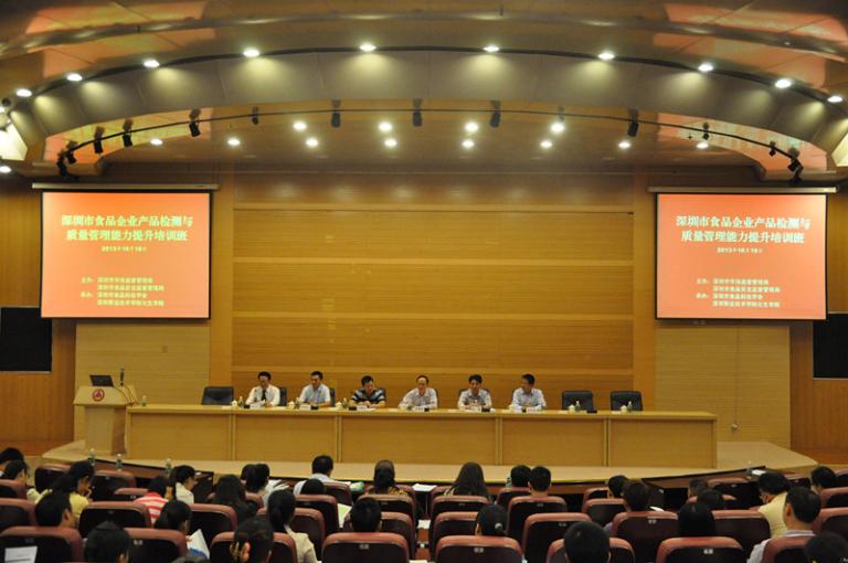 10月18日,由深圳市市场监督管理局、深圳市食品安全监督管理局主办,深圳市食品科技学会和伟德官网化生学院联合承办的“深圳市食品企业产品检测与质量管理能力提升”大型讲座在伟德官网留仙洞校区图书馆报告厅举行。深圳市食品安全监督管理局陈建民副局长、深圳市食品安全监管局准入处马麟泳处长、深圳市食品科技学会林榆生会长、张永红秘书长、化生学院林峰副院长出席,来自深圳市食品行业的150余名企业代表及化生学院食品与生物技术专业群师生听取了报告。
