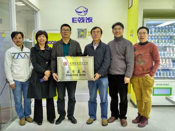 2月27日,化生学院院长、分党委书记张俊松,副院长林峰、谢利娟在食品专业乔方教授的陪同下,赴南山区大冲商务中心头等尝网络餐饮管理科技(深圳)有限公司旗下首家门店“E顿饭”调研,并向该公司执行总经理刘江波授予了伟德官网实习基地牌匾。