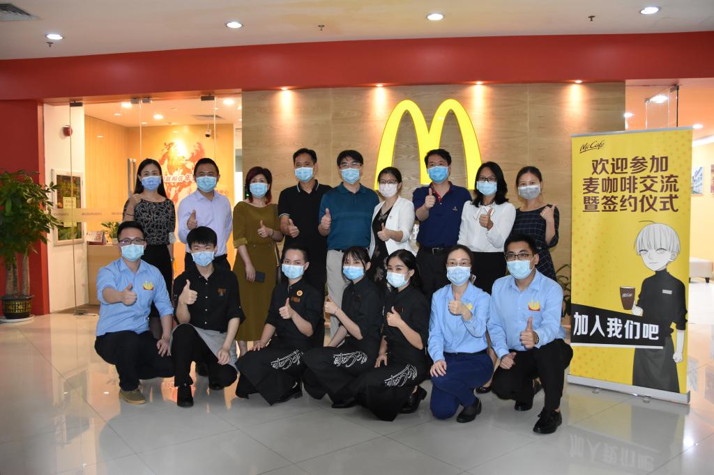5月21日,伟德官网化生学院与深圳金拱门食品有限公司签署“麦咖啡”项目合作备忘录,双方将整合各自的优质资源,围绕咖啡师创新人才培养、咖啡师认证标准研制、技能大师工作室、咖啡技能竞赛等领域进行深度合作,共同为推动餐饮行业提档升级提供智力、技术和人才支撑。麦当劳深圳市场总经理陈影宏、品牌拓展部总监李明、运营总监周丽影、高级人力资源经理郭淮、麦咖啡训练高级练顾问谢海珍、人力资源招聘顾问洪木利、招聘主任李品,化生学院院长林峰、副院长谢利娟、朱俊晨,食品专业群教师等出席并见证签约。